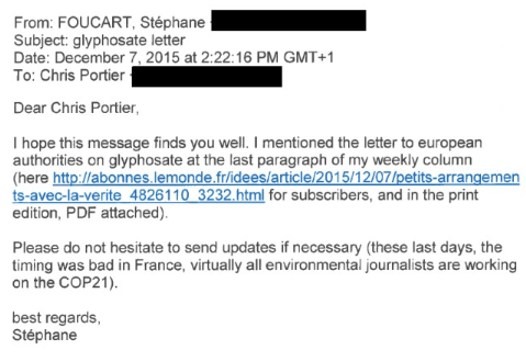 The lead author of IARC’s glyphosate monograph, Kate Guyton took to criticising EFSA via journalists. Kate’s go-to person to get IARC’s position transmitted word-for-word in the press is Le Monde’s anti-industry feral reporter, Stéphane Foucart. When EFSA’s clear position was making IARC look bad, Guyton fed Foucart an info-package on how IARC has better qualified scientists than EFSA. When I reported on how IARC was using Foucart as their puppet in their little ‘spat’ with EFSA and that the Le Monde journalist was merely aping IARC’s talking points, the French daily and Foucart threatened to sue my blog-host at the time, EurActiv. Seeing released annex documents from the Portier Daubert hearing I shuddered at how Guyton indeed had contacted Foucart to push IARC’s interests in this EFSA attack article (with Chris Portier in tow no less). Foucart’s lawsuit threat turned out to be hollow hypocrisy.