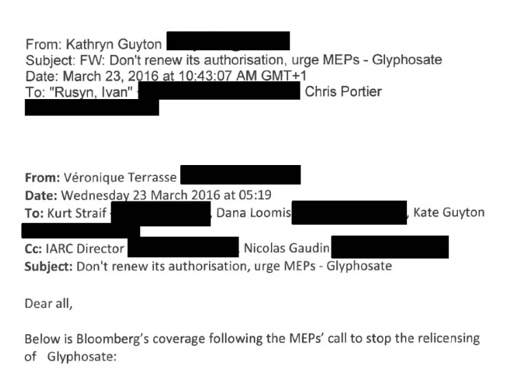 Two weeks later, Portier wrote a letter to Dr Andriukaitis demanding the European Health Commissioner “disregard the flawed EFSA finding” on the safety of glyphosate. We know that Portier got support from Linda Birnbaum’s office on the content of that letter and many of the names of the 96 signatories (Chapter 7 of SlimeGate will discuss this stealth institutional meddling), but how much help did IARC’s Straif and Guyton lend to Chris? We also know IARC was involved with this anti-EFSA letter as they gave a list of emails to Portier to trawl for signatories for his letter. Chris was not working alone in the campaign against EFSA on glyphosate.