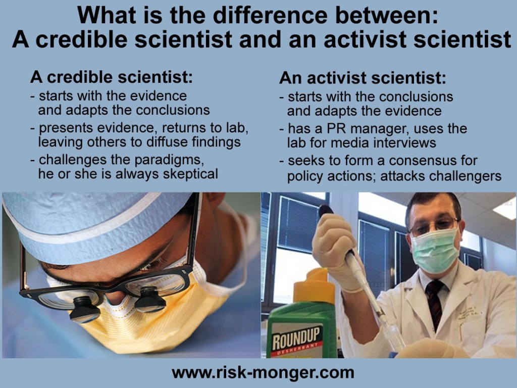 It is foolish to think there is such a thing as “the science”; rather there are fields of sciences. These fields are cesspools of competing ideas, paradigms, baselines, varying data, methodologies and, of course, enormous egos. Attend a scientific conference where a controversial paper is presented; it is anything but civil (I often wonder why they don’t sell popcorn at these events). I got to see firsthand how chemists and toxicologists (who measure safety by exposure level, counting the dead rats and empirically determining an LD50) would be confronted by biologists favouring a hazard-based approach who feel that complex systems cannot be so easily determined. Different fields of science have different methodologies and different interests. When, for example, a statistician with friends in IARC decided glyphosate was a carcinogenic risk (while ignoring data and studies from those toxicologists who actually researched and tested the subject), shouldn’t we stop and think about the perspectives before we let the interest groups vote?