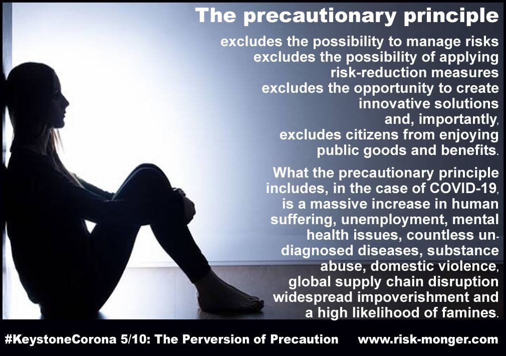This COVID-19 policy travesty decimating most European countries was due, almost completely, to the regulatory reliance on the precautionary principle as the sole management tool in cases of uncertainty. Precaution is indeed very attractive. All that a policymaker needs to do is demand 100% safety and certainty (two emotional concepts) and then simply say “No!” to anything that does not meet these impossible demands. Better safe than sorry means you are never really wrong and most cases, no one will blame you for the lost benefits and societal consequences. But in the case of the COVID-19 coronavirus, the lost benefits are clearly evident – the bodies have been piling up outside of our leaders’ offices. How long can they continue to claim their “failure to act until it was too late” was indeed the only course of action?