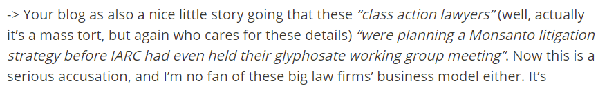 We have seen this Predatort strategy play out recently with hundreds of thousands of cases against J&J on talc and Bayer on glyphosate, with the only evidence based on very questionable IARC publications. Of course scientific documents are very complicated for the average American juror so it would be helpful to better shake the tort money tree if they could establish significant disgust among the general population to bring any potential juror, pre-trial, into a rabid rage demanding justice. The recent decisions and the pay-outs against J&J and Bayer were more about outrage at corporations than about facts and evidence.