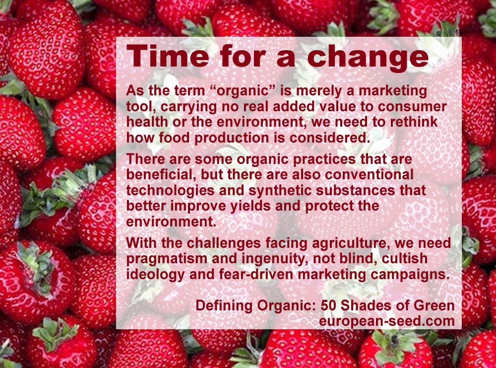 As the term “organic” is merely a marketing tool, carrying no real added value to consumer health or the environment, we need to rethink how food production is considered. There are some organic practices that are beneficial, but there are also conventional technologies and synthetic substances that better improve yields and protect the environment. With the challenges facing agriculture, we need pragmatism and ingenuity, not blind, cultish ideology and fear-driven marketing campaigns. My next column will look at an alternative to this organic/conventional polarity by introducing a concept called “better farming”.
