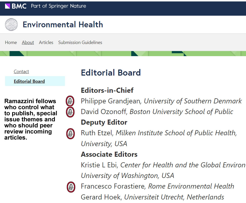 With serious money in the bank and credibility among your peers, you can begin to travel the world, speaking to government officials and journalists on behalf of some interest group, non-profit managed out of a tort law office or colleague with an agenda. With your Ramazzini fellowship, you will be lighting the aisles and giving keynotes at the best conferences, your Collegium friends will peer review your articles (ghost-written by someone whose name may escape you since you are just too busy to actually go back into a lab) and auto-publish them in journals like “Environmental Health” where the editors all share your secret handshake. And these friends will never allow a critical response to your work to be published.