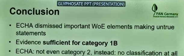 - Peter Clausing from PAN brought up issues that EFSA had already addressed but then played into the prepared narrative of how oxidative stress is the new game-changer for banning glyphosate. It seemed that only the Risk-Monger winced when the angry scientist accused EFSA and ECHA of making untrue statements, ie, lying. EU officials have to remain respectful, but Peter only had one finger visible on his hand. I get it … It’s a long flight to Helsinki … all for nothing.