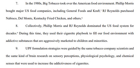 The food industry has to stop thinking they are not as bad as the chemical industry, vaping, plastics, alcohol and pesticides in the downward race to be portrayed as the next Big Tobacco. The food industry now is Big Tobacco with many claims that tobacco industry scientists are being employed by food companies to create addictive experiences, executives carrying out tobacco-like deceptions and tobacco-style marketing campaigns. It is not that they are following the tobacco playbook, lawyers, NGOs and the media are arguing that the food industry has recruited the same players.