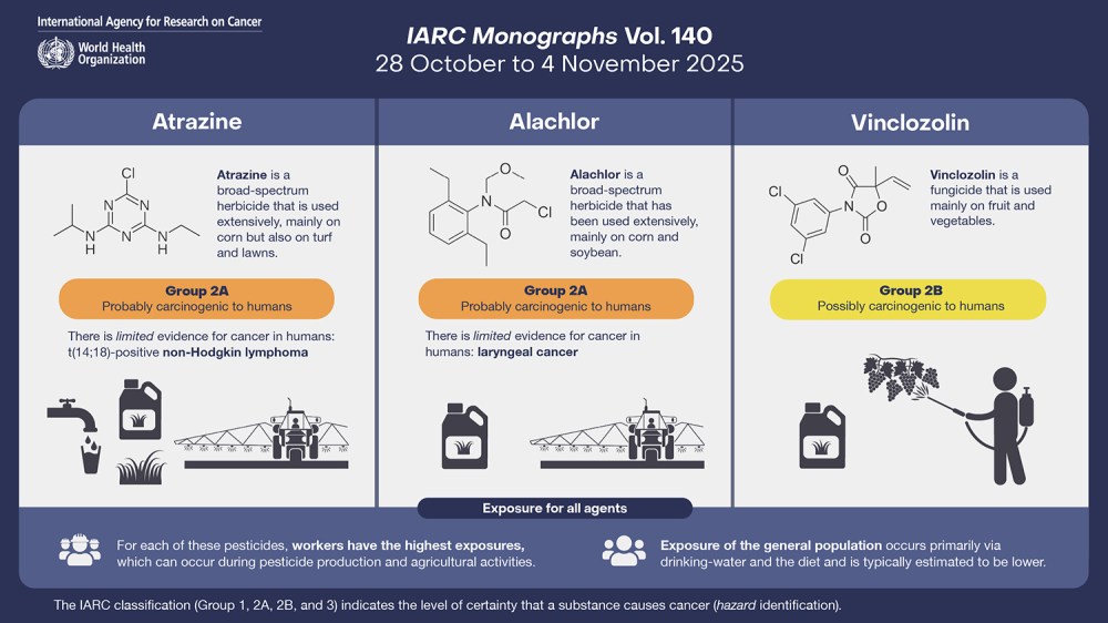 Last week a WHO scientific body, the International Agency for Research on Cancer (IARC), published Monograph 140, releasing its initial findings on the herbicides: atrazine and alachlor, and the fungicide: vinclozolin. Given that IARC performs hazard assessments, which lack any real world exposure considerations, it was no surprise that they found these pesticides, in the case of atrazine, to be probably carcinogenic (Group 2A). Importantly, that is enough for the US litigation industry to start harvesting plaintiffs from late-night TV ads to build up an extortionary force large enough to extract a settlement with the atrazine manufacturers.