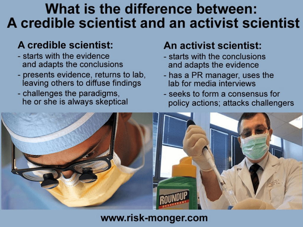 Respected scientists will take any claim and try to disprove it (Popper’s theory of robust hypotheses resisting falsification attempts). An activist scientist will take that claim and declare a consensus (with those that agree with them) and robustly attack anyone who dares challenge that “consensus” of 22 self-appointed IARC monograph panel members. Did these monograph panel members critically analyse those few studies that gave them their coveted “carcinogenic” conclusion?